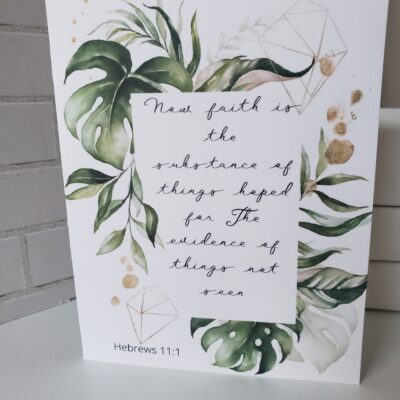 Encouraging scripture card set of 8 with tropical floral watercolor designs. These beautiful scripture prints are great to have on hand as a Thank You, Thinking Of You, Praying For You, etc. greeting card. Blank on the inside so you can write your personal message. Each card is different and measures 5.5×4.25. Printed on quality…
